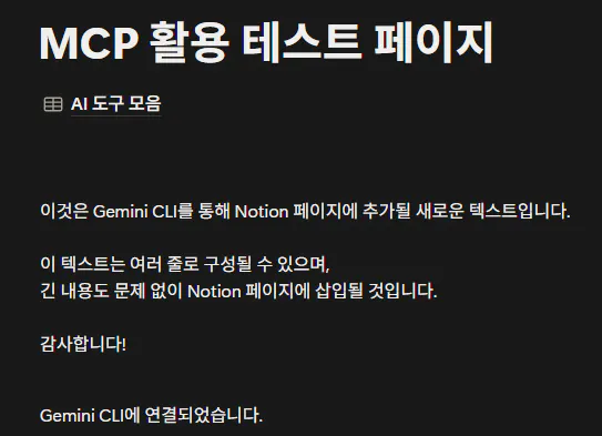[Gemini CLI Notion MCP 연결 화면 ]
