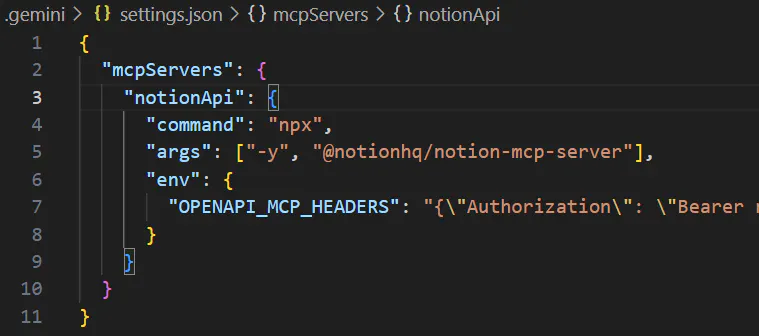 • settings.json 파일을 작성해 Notion MCP 연결 성공
