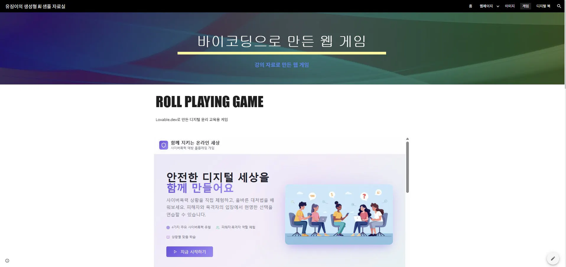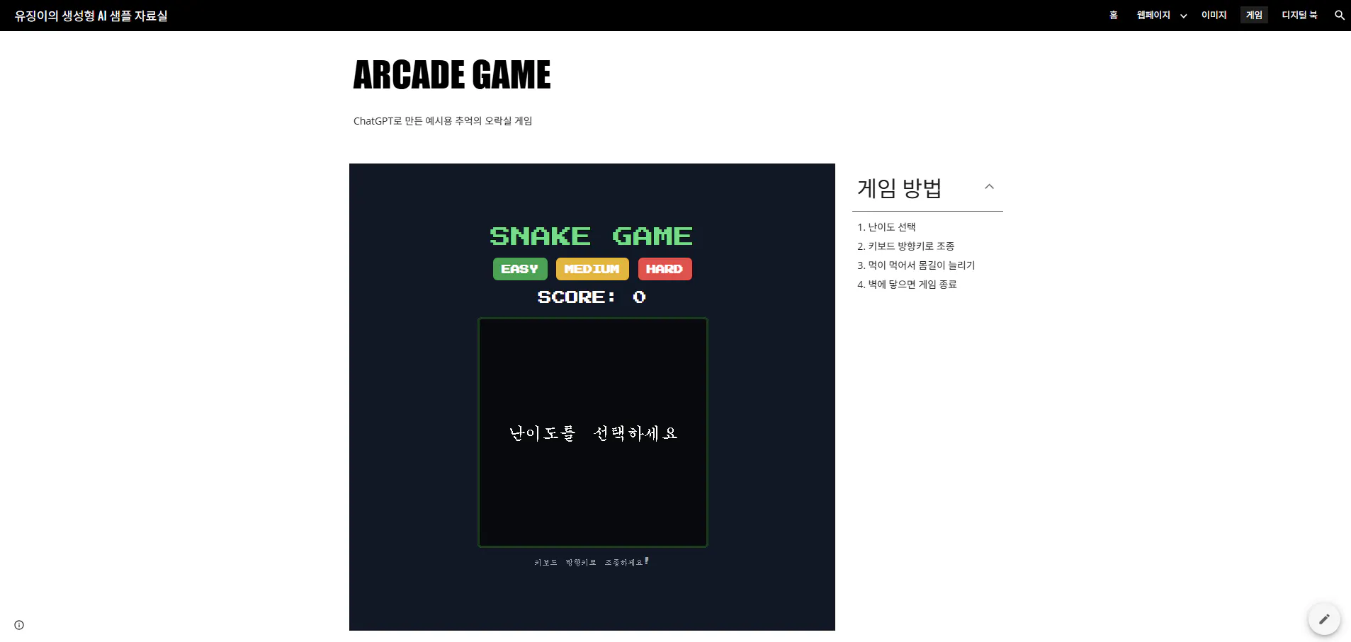2. 웹페이지 자료실: 생성형 AI로 만든 웹페이지들을 하위페이지에 링크 또는 소스 코드 붙여넣기