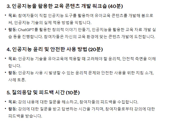 처음으로 글을 올리는데… 이게 긴장되네요 ㅎㅎ정보화교육을 특강으로 진행하게 되었습니다. 교육 대상은 보육교직원이고, 5회 특강 중 1회 2시간 ‘인공지능’활용하기 를 진행하는데 교육 시간이 짧아 고민이 많았습니다.#10기교강사