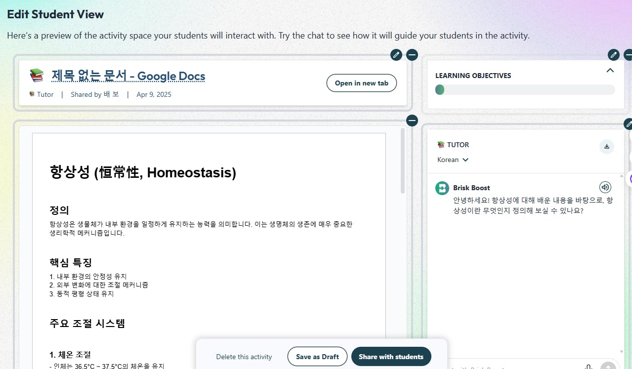 이제 수업에서 개별화 학습을 위해 '브리스크티칭 튜터링'을 사용해보면 어떨까요??