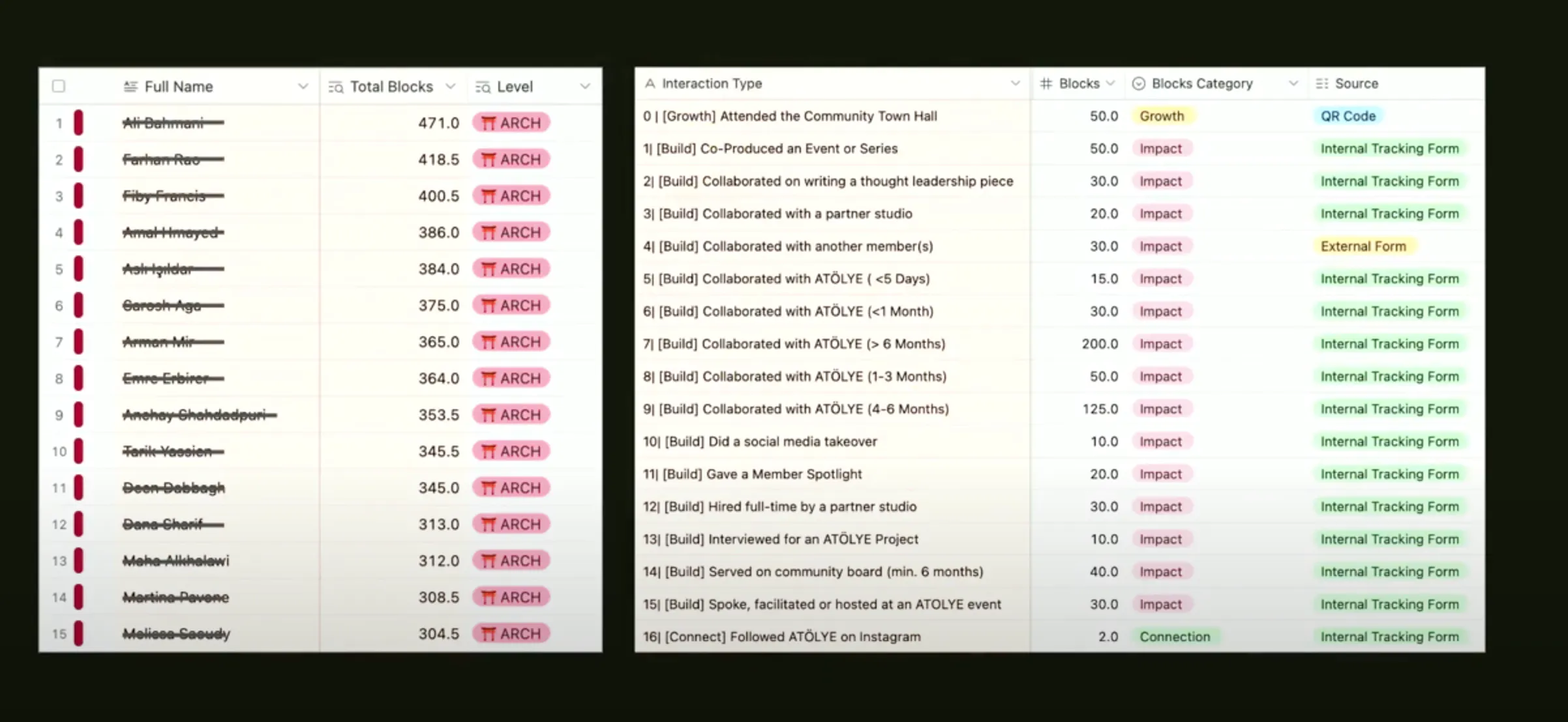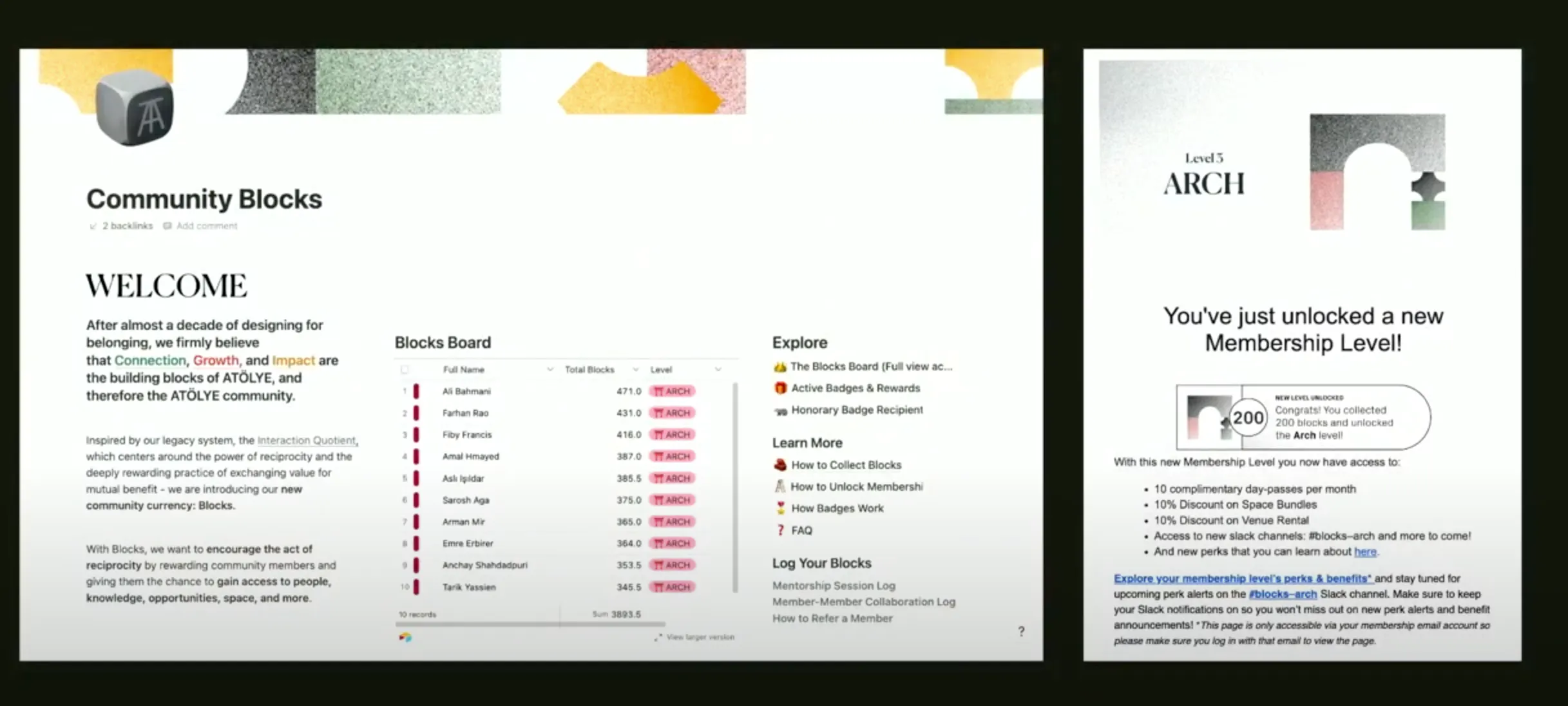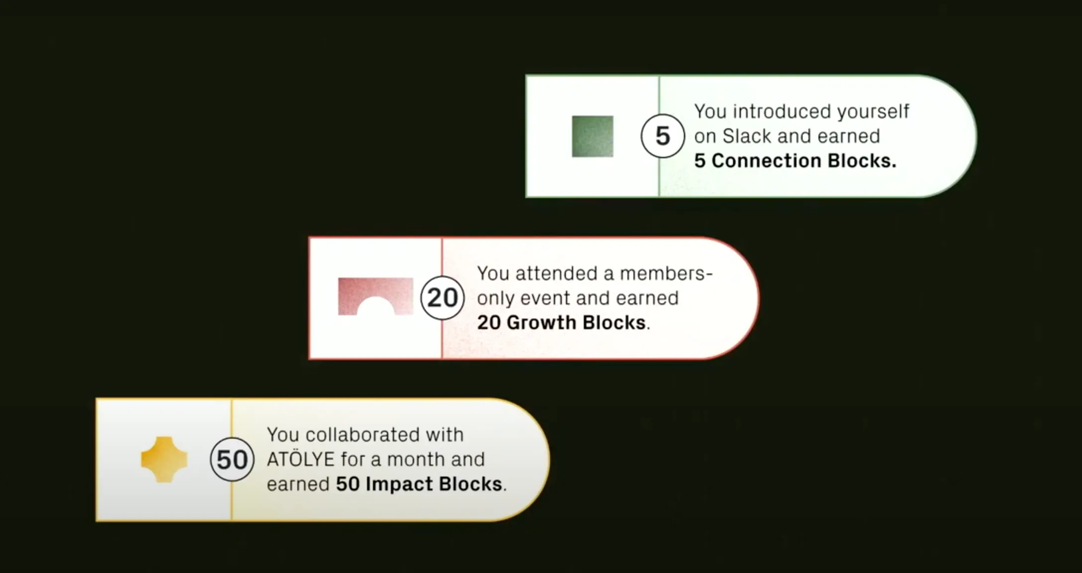 • 가장 큰 핵심은 유료 멤버십을 무료로 전환하는 대신 인게이지먼트를 높이는 멤버들의 행동들에 포인트를 주고 포인트에 따른 각종 보상 및 레벨을 높여주는 게이미피케이션 시스템을 도입한 것이 었음(어차피 이들은 공간을 운영한 가장 큰 목적은 멤버십비용으로 인한 수익이 아니고 본인들이 언제든 쓸 수 있고 콜라보 할 수 있는 프리랜서들을 곁에 두고자 함이 었음)