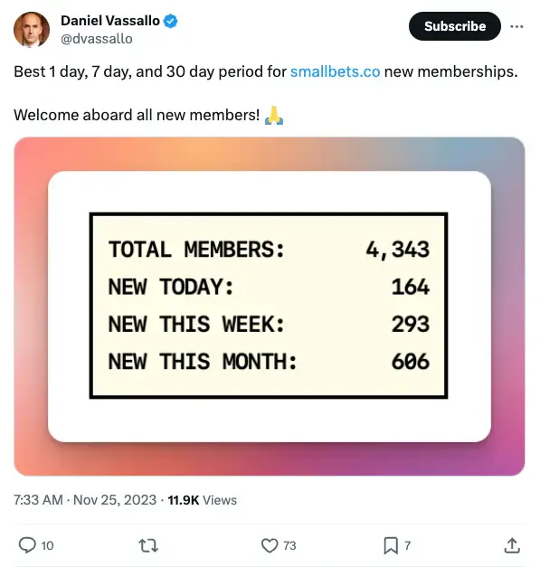 초창기에는 트위터에서 Small Bets 회원을 유치함 (당시 팔로워 7.7만명, 현재 16만명)
