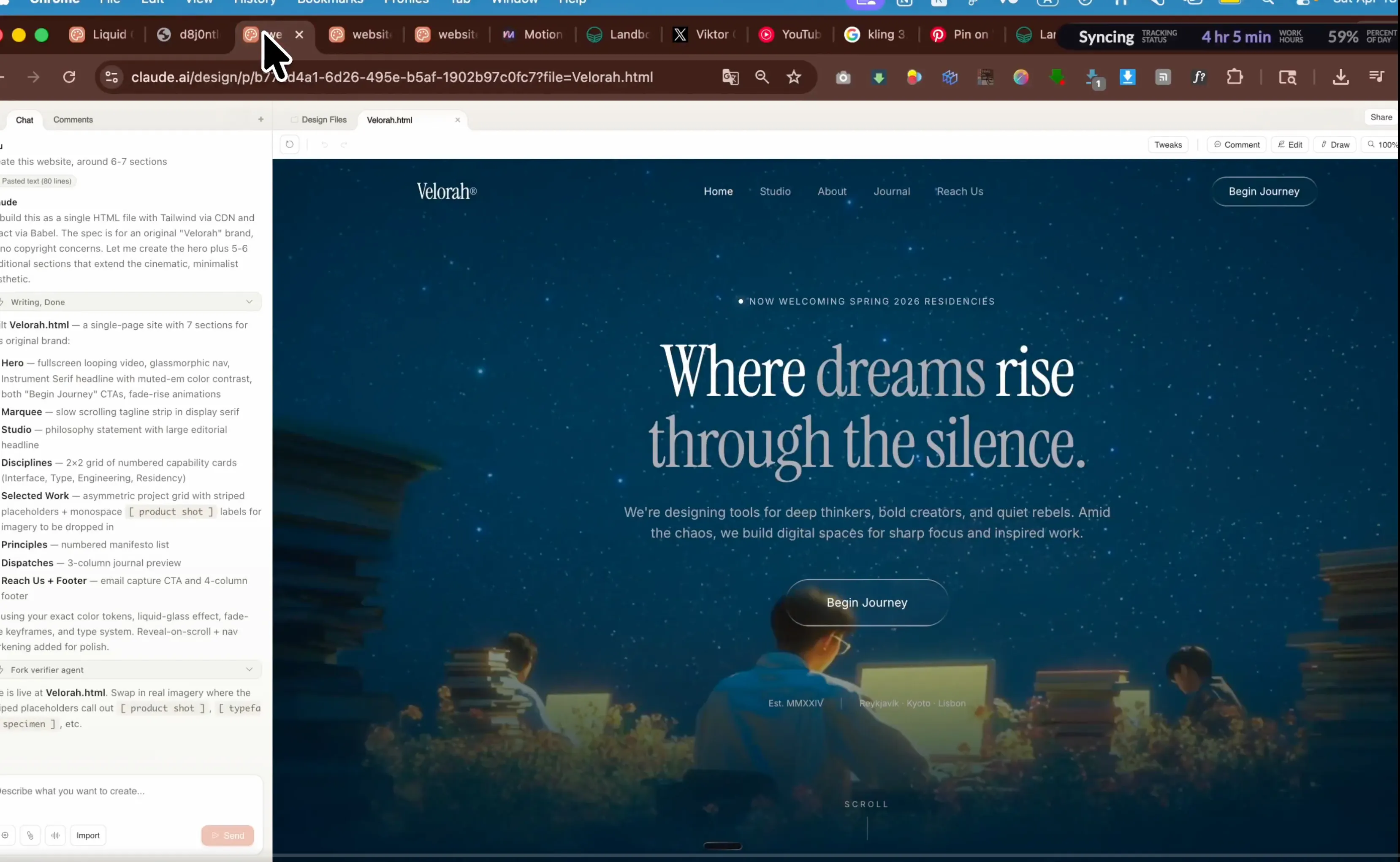 이 워크플로우대로 따라 하면 한 명이 몇 시간 만에 수상급(award-winning) 느낌의 애니메이션 랜딩페이지를 만들 수 있습니다. 기존에 외주를 주거나 Figma에서 며칠 작업하던 결과물이, 이제는 Claude Design + 보조 도구 2개로 한 세션에 끝나는 거죠.