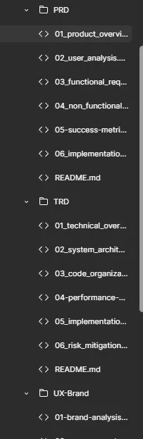 ์ ๋ ํ๋์ ํ๋ก์ ํธ์ PRD/TRD/UX-Brand ๋ฌธ์๋ฅผ ๋๋
