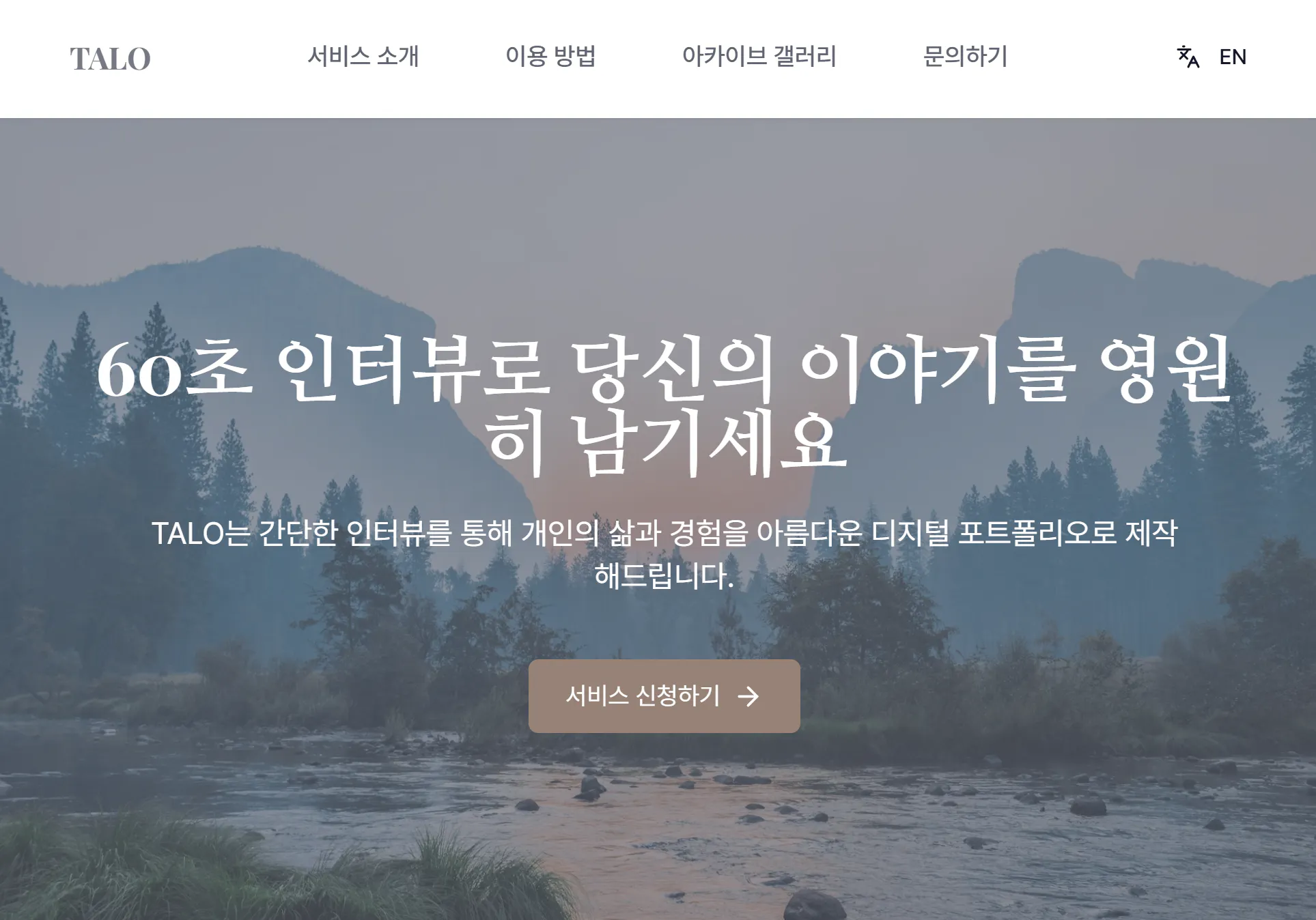 TALO는 시니어(특히 원로 예술인)의 인생 이야기를 인터뷰(60~90분)하여, AI와 인간의 협업을 통해 따뜻하고 감성적인 스토리텔링 기반의 디지털 포트폴리오를 제작하는 서비스이다. 장기적으로 개인의 이야기를 디지털 아카이브화하여 문화적, 사회적 가치를 창출하며 수익화할 계획이다.