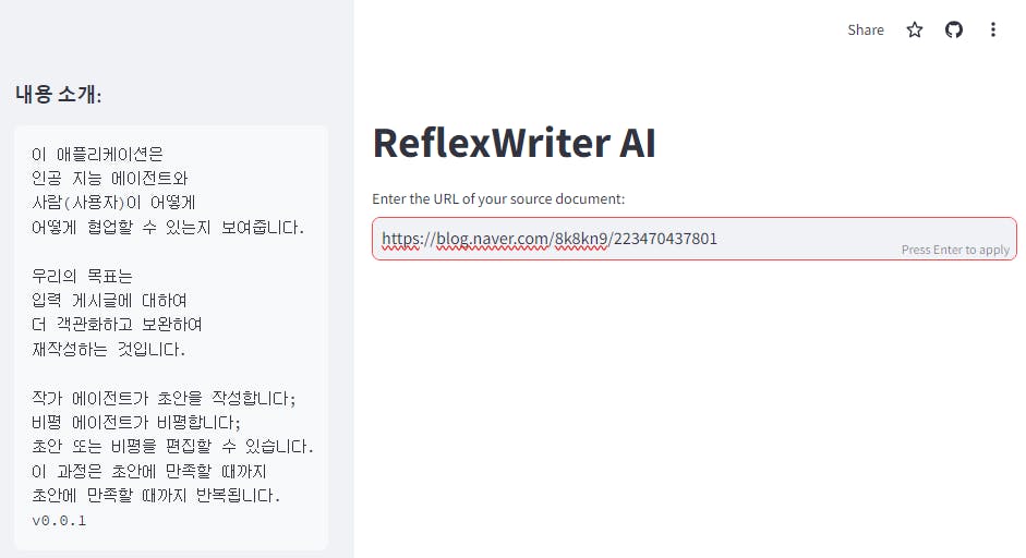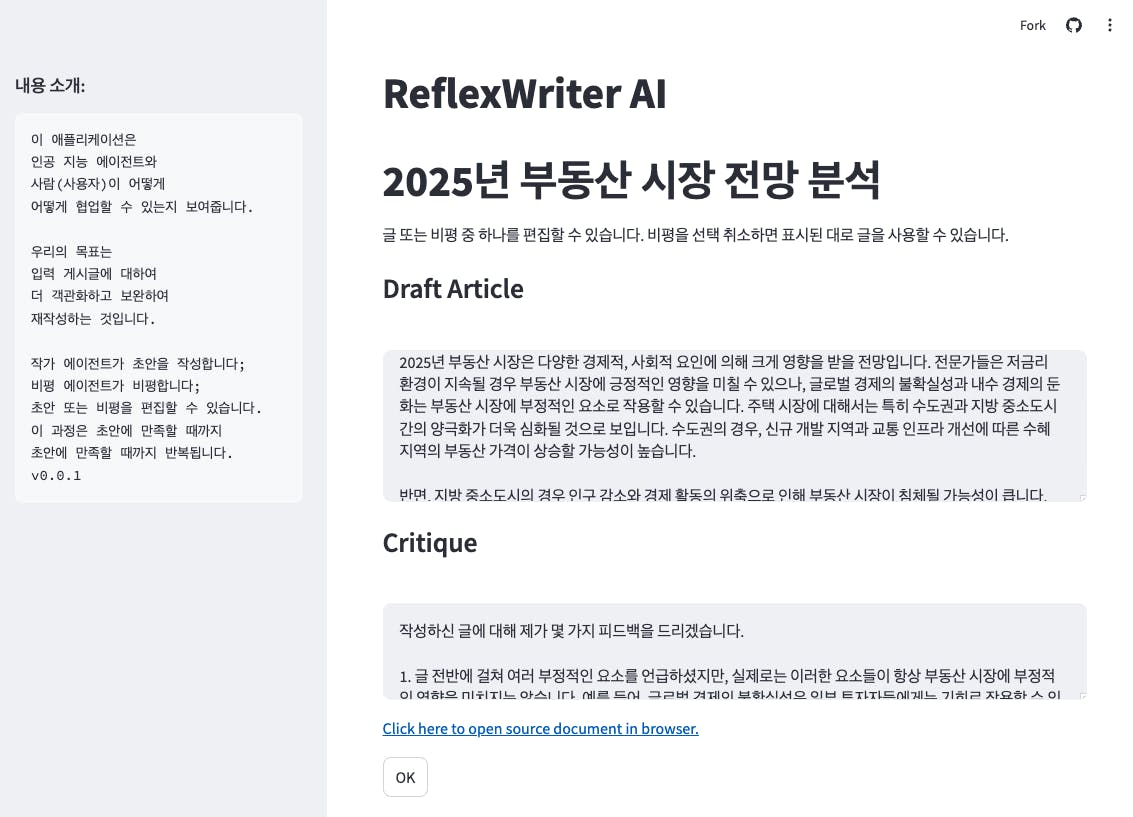 Draft Article와 Critique를 사람이 직접 수정할 수도 있어서