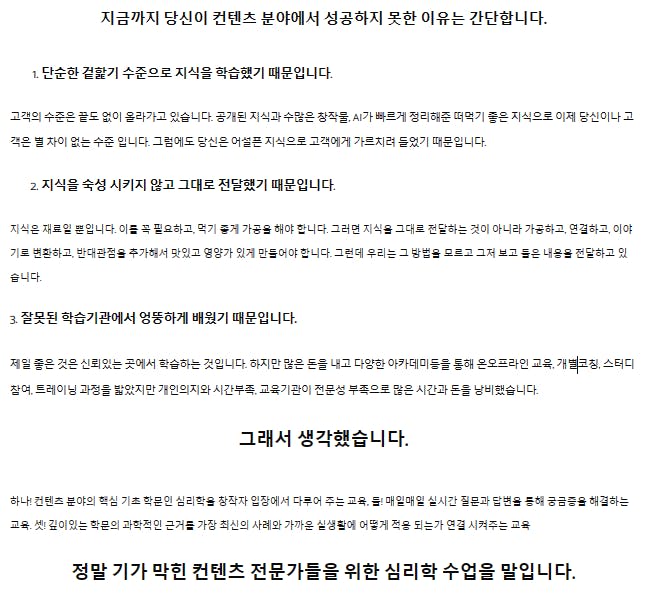 이를 초안으로 하여 상세페이지 “프리미엄 토요심리학”을 작성하였습니다.