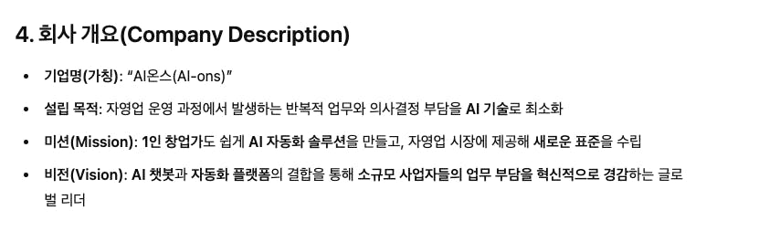 이 방대한 사업 기획서에서 수정한 부분은 "1인 창업가가 AI를 적극 활용해 부서 기능을 대체/보완한다는 점" 입니다.