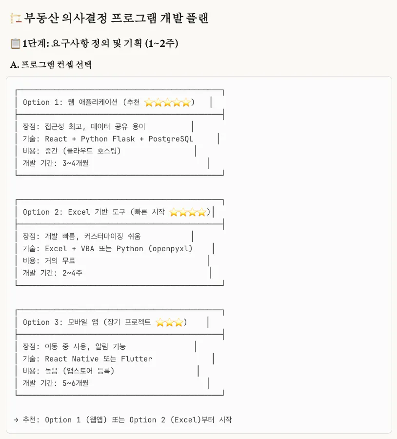 현재 보유한 부동산 시세를 고려해 실거주 목적의 주택을 어떻게 선택할지를 고민하며, 이에 도움이 될 수 있는 의사결정 프로그램을 구상하게 되었습니다.