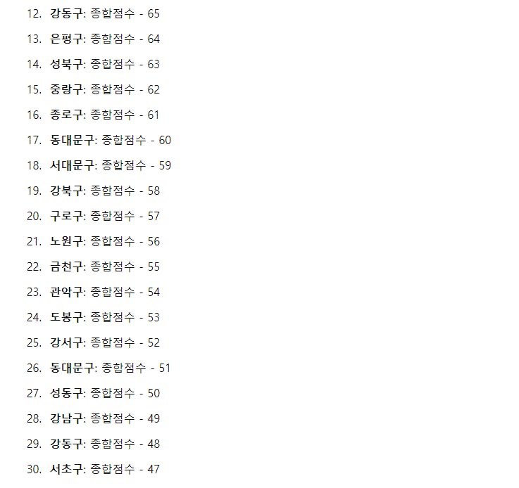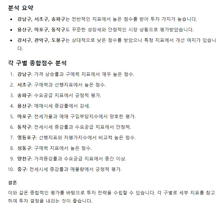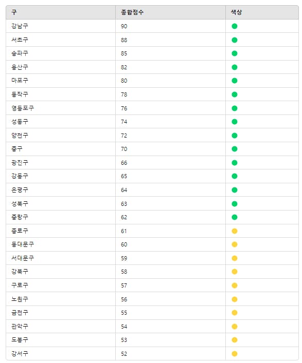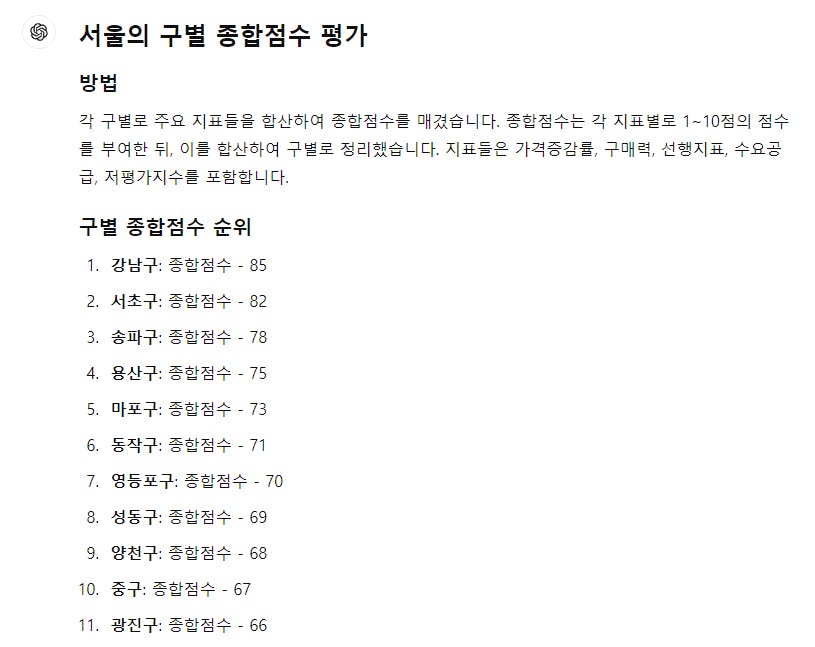 저번에는 중랑구(거주지를 중랑구로 적었더니 챗gpt가 중랑구만 선정한것 같습니다.)에 대해서만 정리를 해서 이번엔 리치고가 제공하는 모든 구의 데이터를 넣고 비교해보자 싶었습니다.
