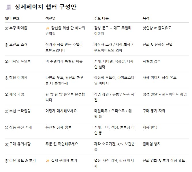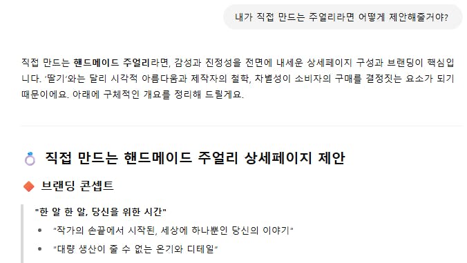 예를 들어 주얼리 상품을 판다고 했을때 다음과 같은 예시를 제안해줌!!!