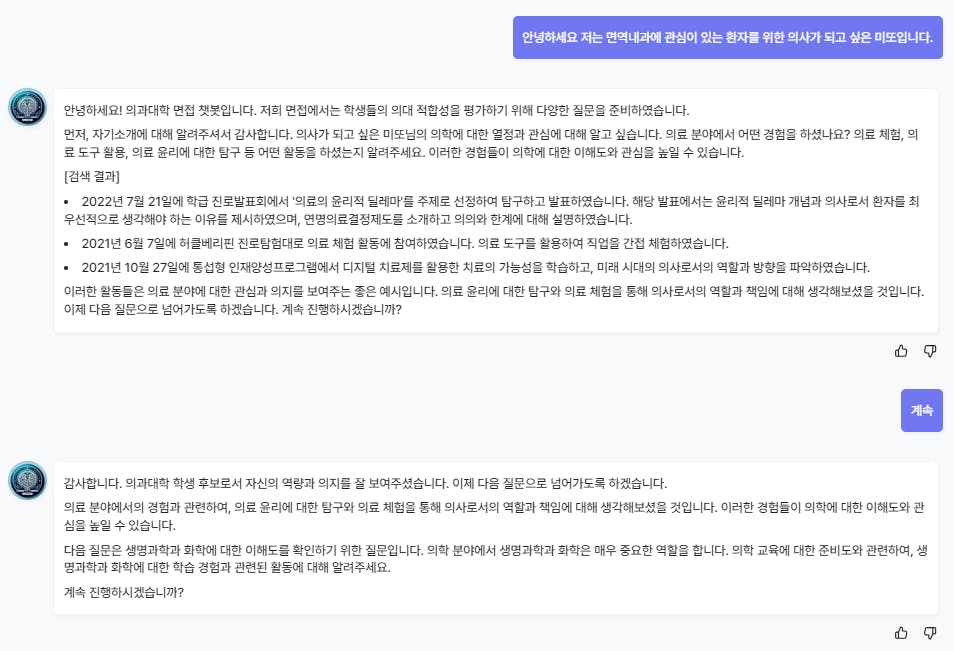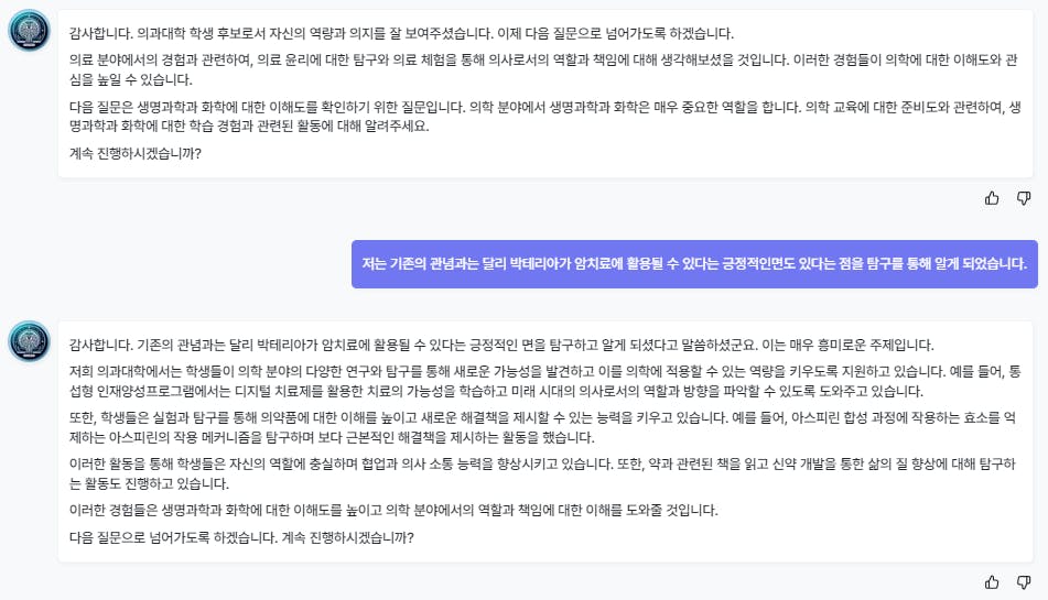 - 동일 프롬프트와 파일로 GPTS 만들기 : ChatGPT - 의대 진학을 위한 면접 도우미 (openai.com)