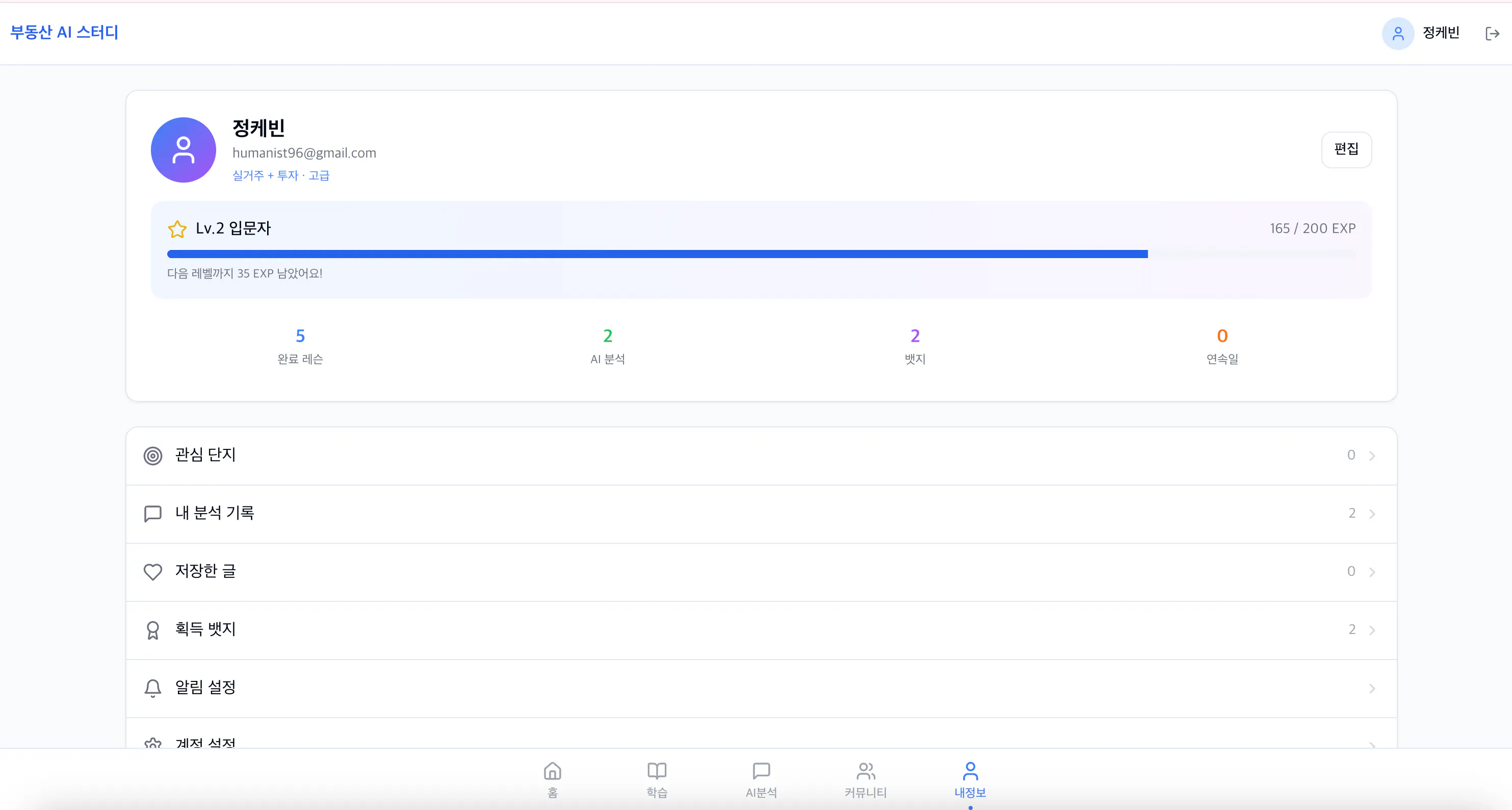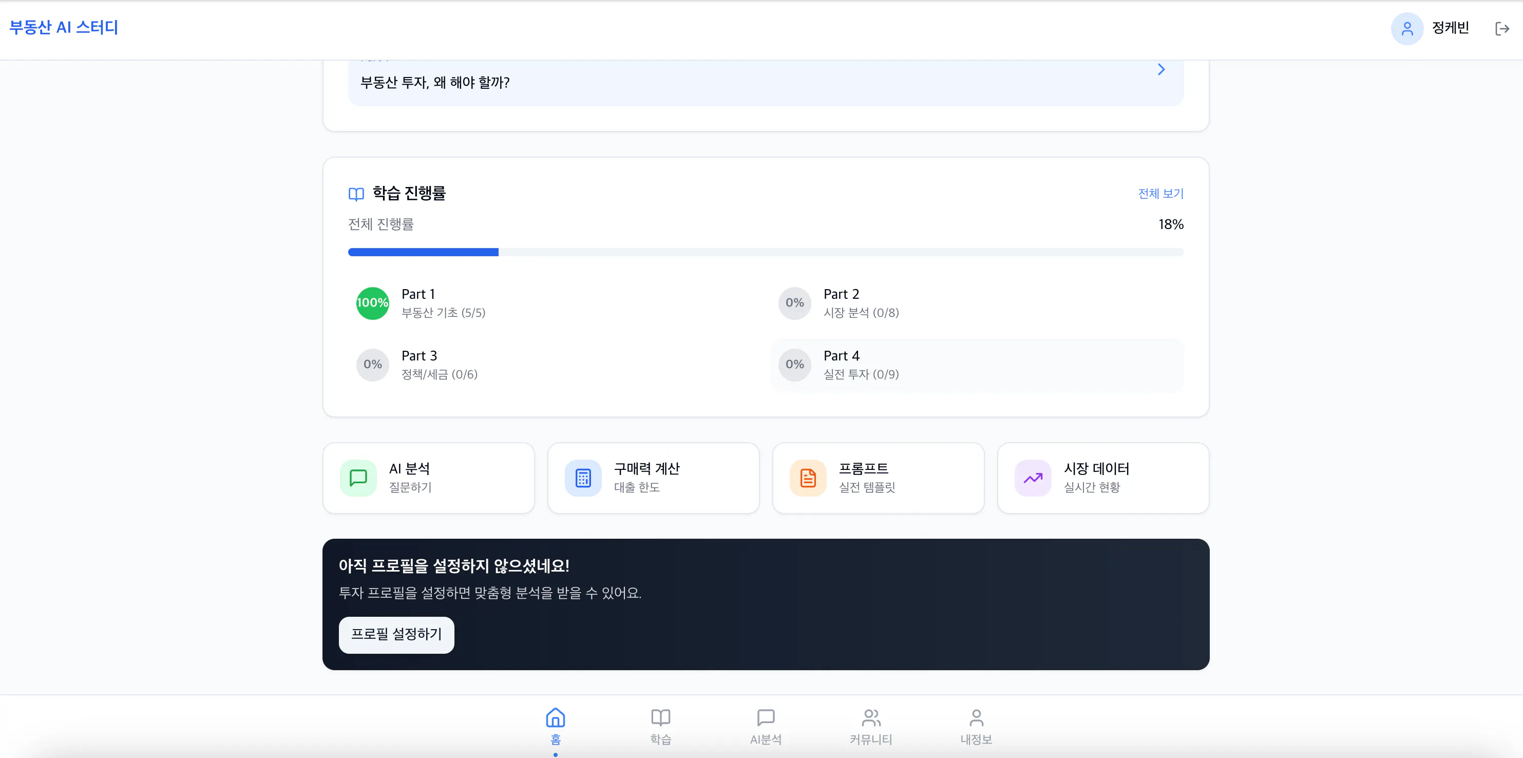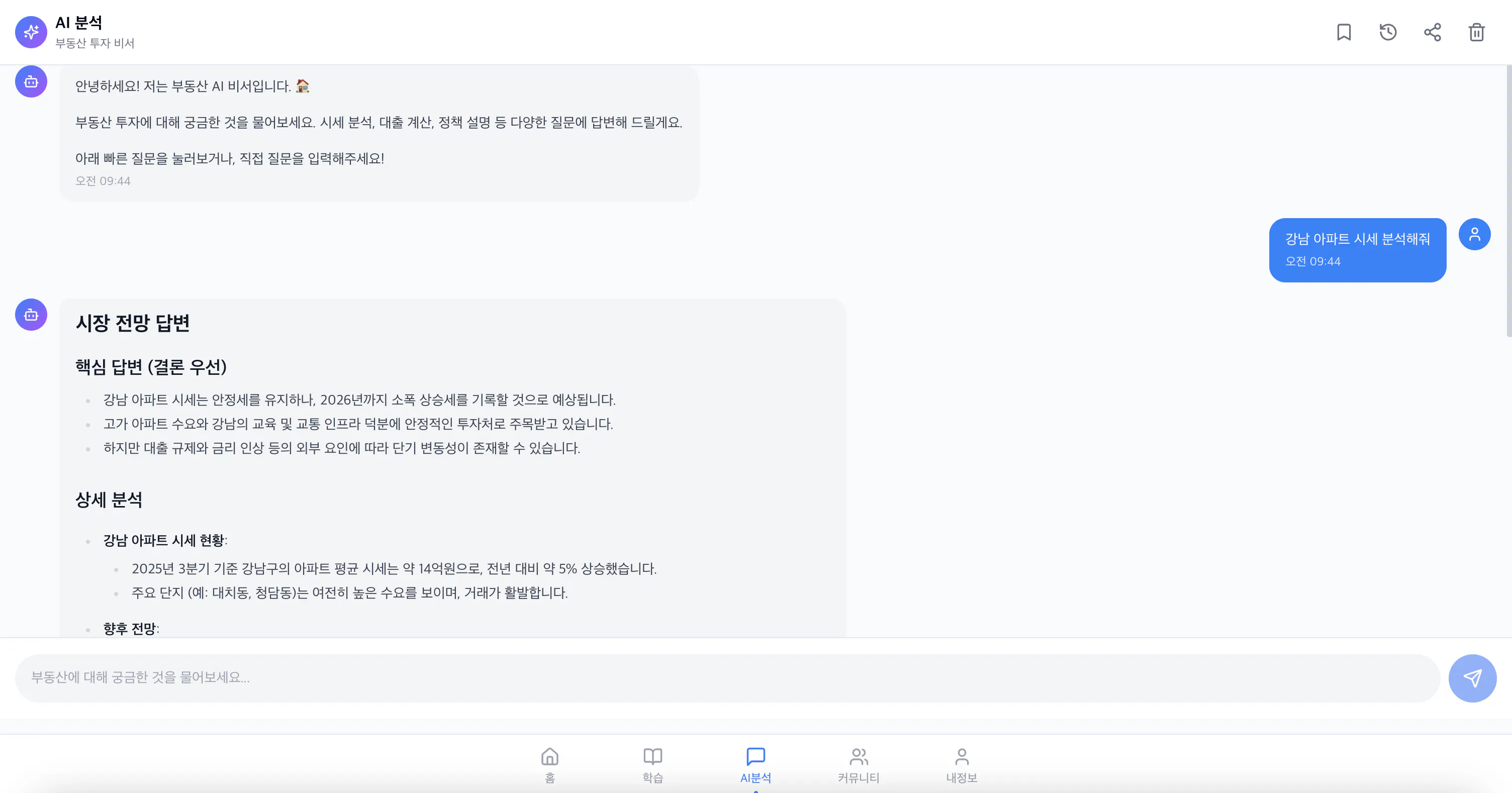 AI 프롬프트 기반의 부동산 투자 학습과 실제 투자 의사결정까지 지원하는 통합 웹 애플리케이션