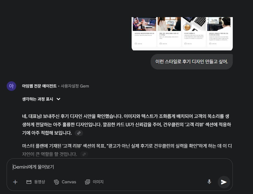 1. 제미나이에서 gem를 만들어 노트북 LM으로 만들었던 가이드를 첨부하고, 다음과 같이 간단하게 지침을 작성합니다. 아임웹 전문 에이전트를 만듭니다