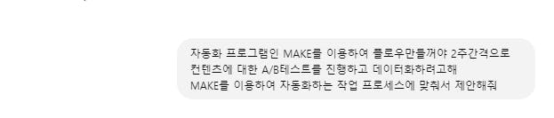 개인 영업을 하는 저에게는 오프라인으로 까지 만남이 연결되기 위한 온라인 마케팅 퍼널이 필요하기에 make를 활용하여 반응형 컨텐츠를 제작해 많은 노출이 필요했습니다.