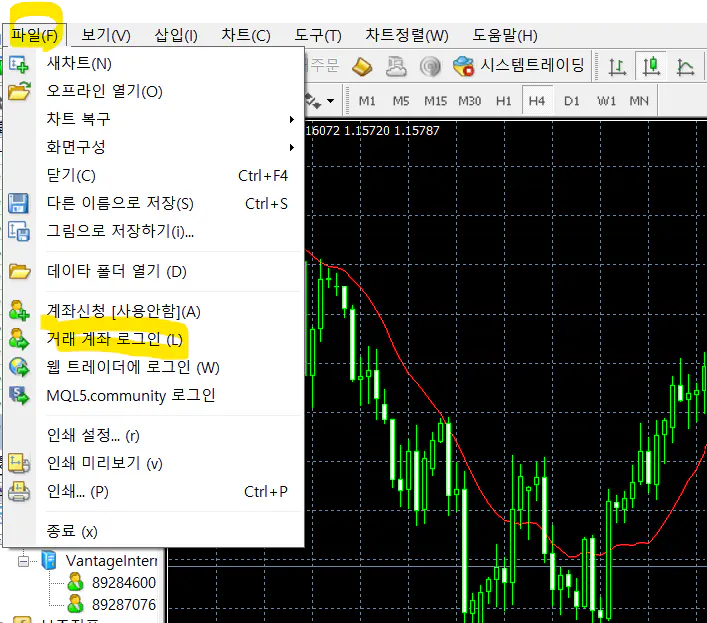 거래 계좌 로그인 시도