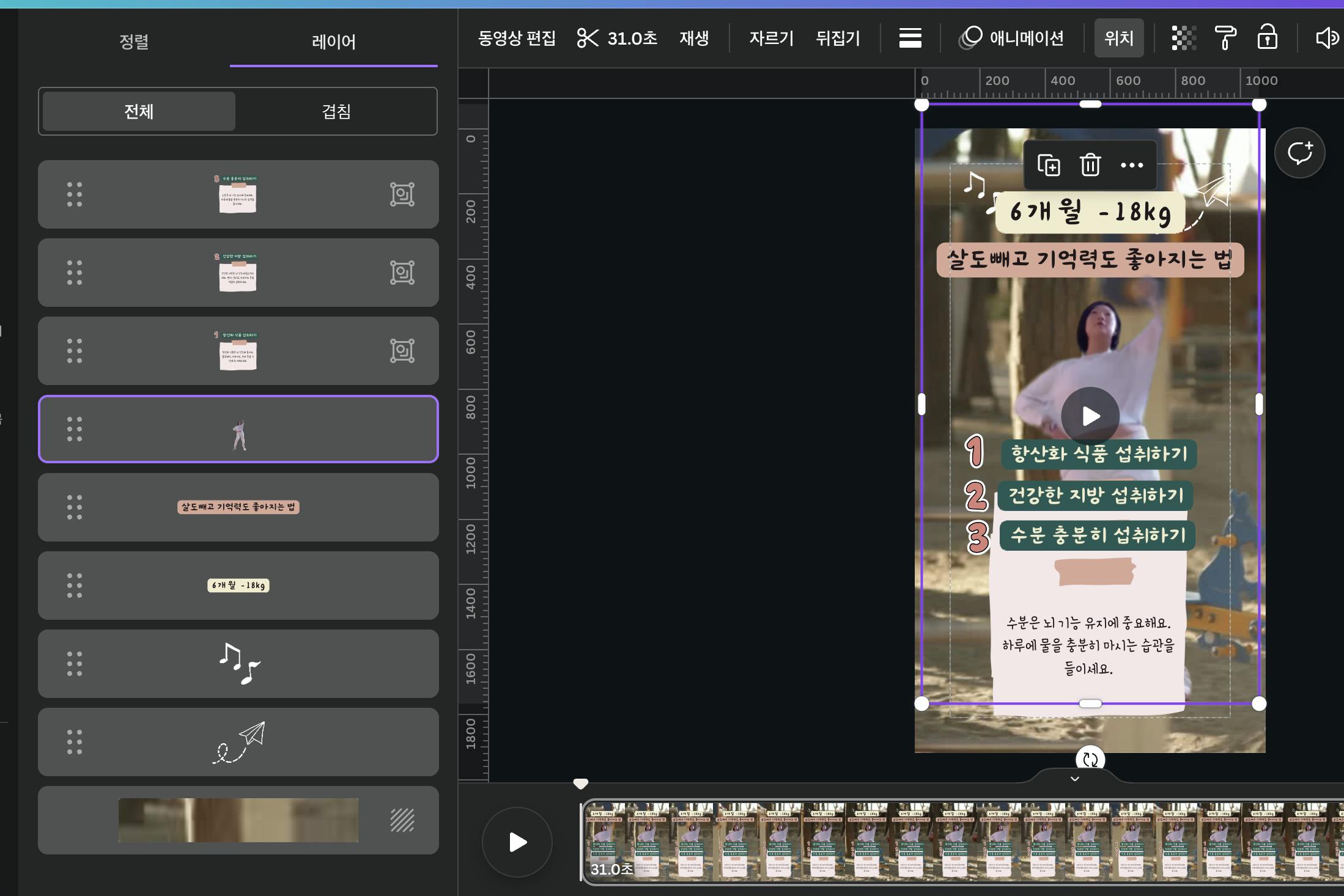 • 하필 댄스 다이어터라 후작업이 많아졌다. 다른 주제로 한다면 훨씬 단계를 단축할 수 있다.