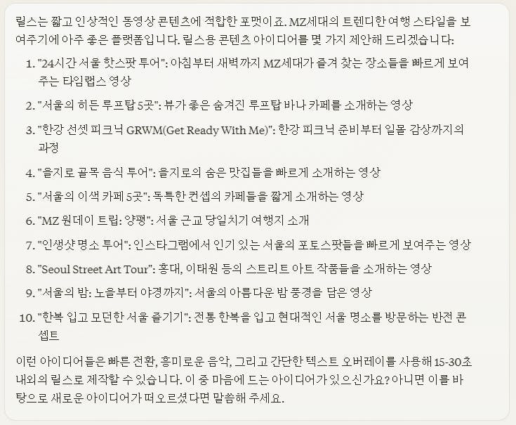 2.1) 클로드를 이용해서 릴스 아이디어 기획