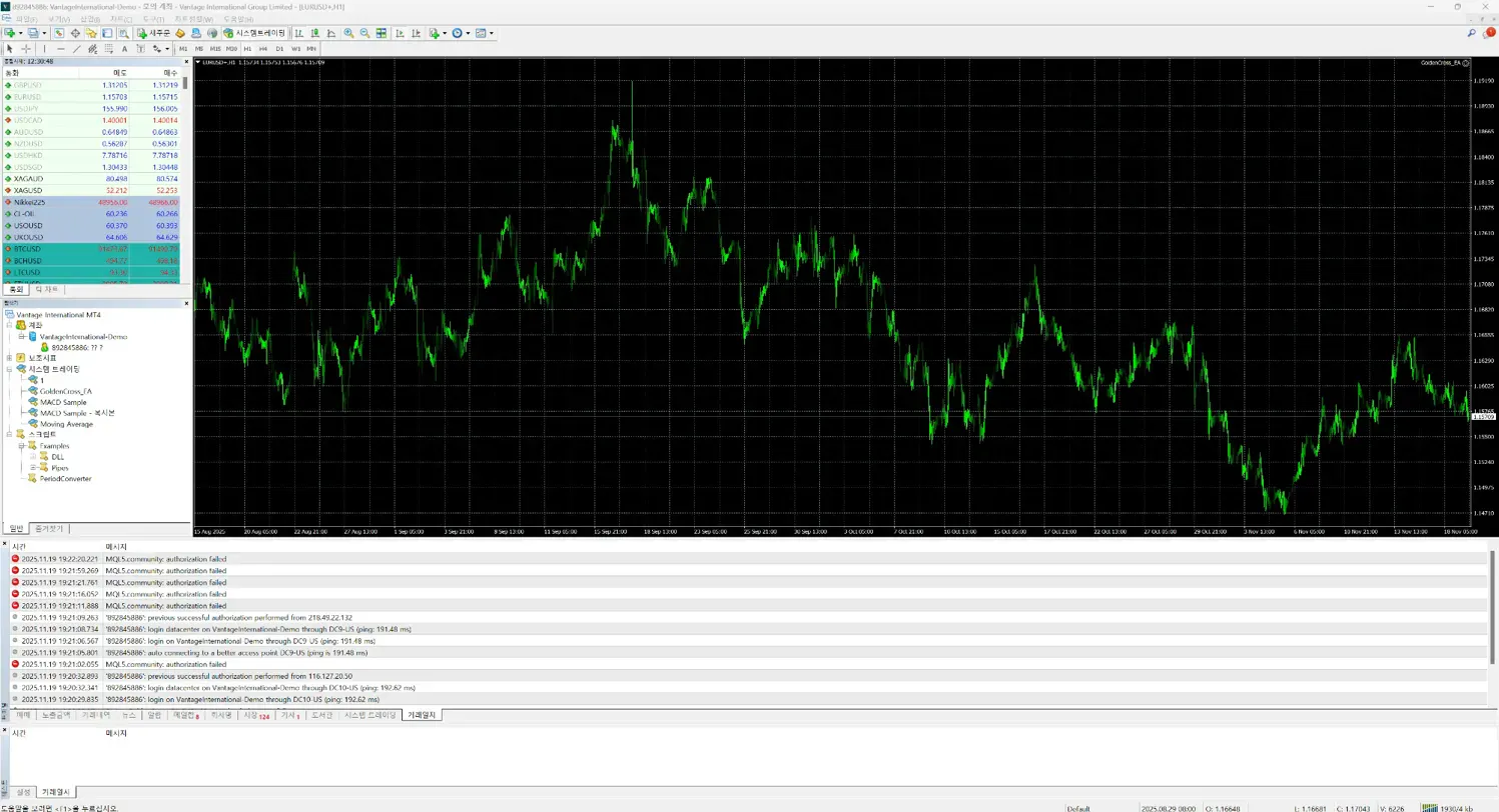 지난 스터디에서 Vantage 데모계좌를 개설하고, MetaTrader4 (MT4) 프로그램을 통해 가상 계좌를 연결한 후 시스템 트레이딩까지 설정을 완료했어요.