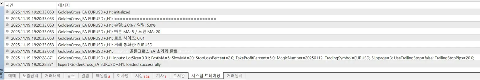 • 시스템 트레이딩(EA) 실행 중 출력되는 로그도 분석
