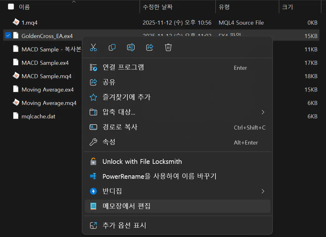 • 생성된 .ex4 파일이 어떤 식으로 작동하는지도 Claude를 통해 확인
