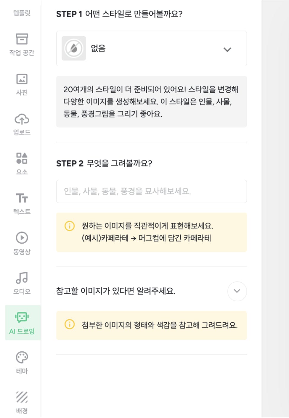• 다른 디자인 편집 작업을 하면서 바로 그림AI로 원하는 이미지 생성 가능