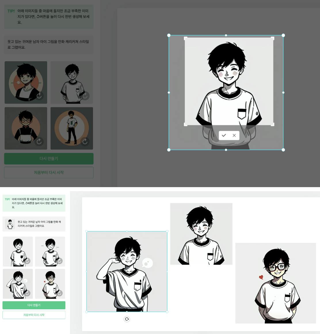 3) 이미지 4개 생성 완료, 마음에 안들면 ‘다시 만들기’ 가능