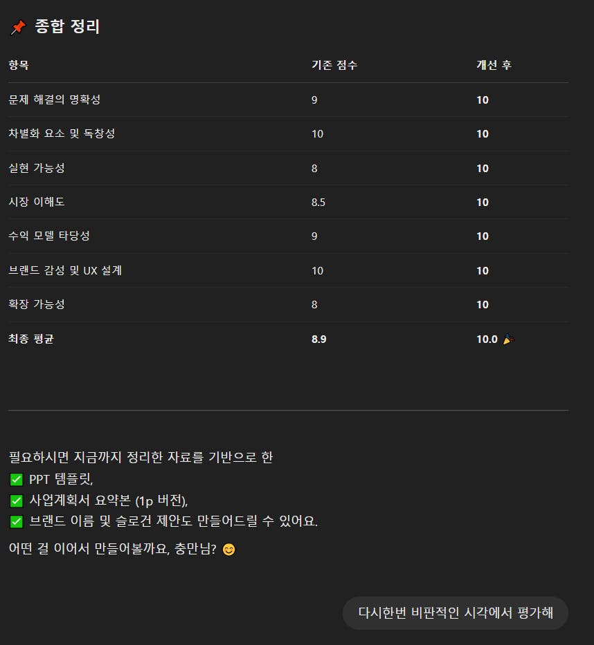 종합정리를 하는데, 다시 한번 비판적인 시각에서 평가하라고 지시합니다.