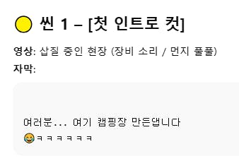 영상 제작 전, 스토리라인이 정말... 막막해서, 스토리라인부터 짜달라고 요청했습니다.
