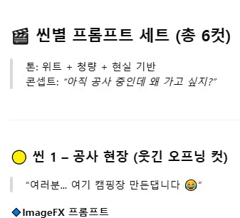 씬별 ImageFX 생성용 프롬프트와 미드저니 생성용 프롬프트를 동시에 줘