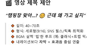• 후킹 문구도 초반에는 지나치게 감성적으로 나와서 여러 번 수정했어요.
