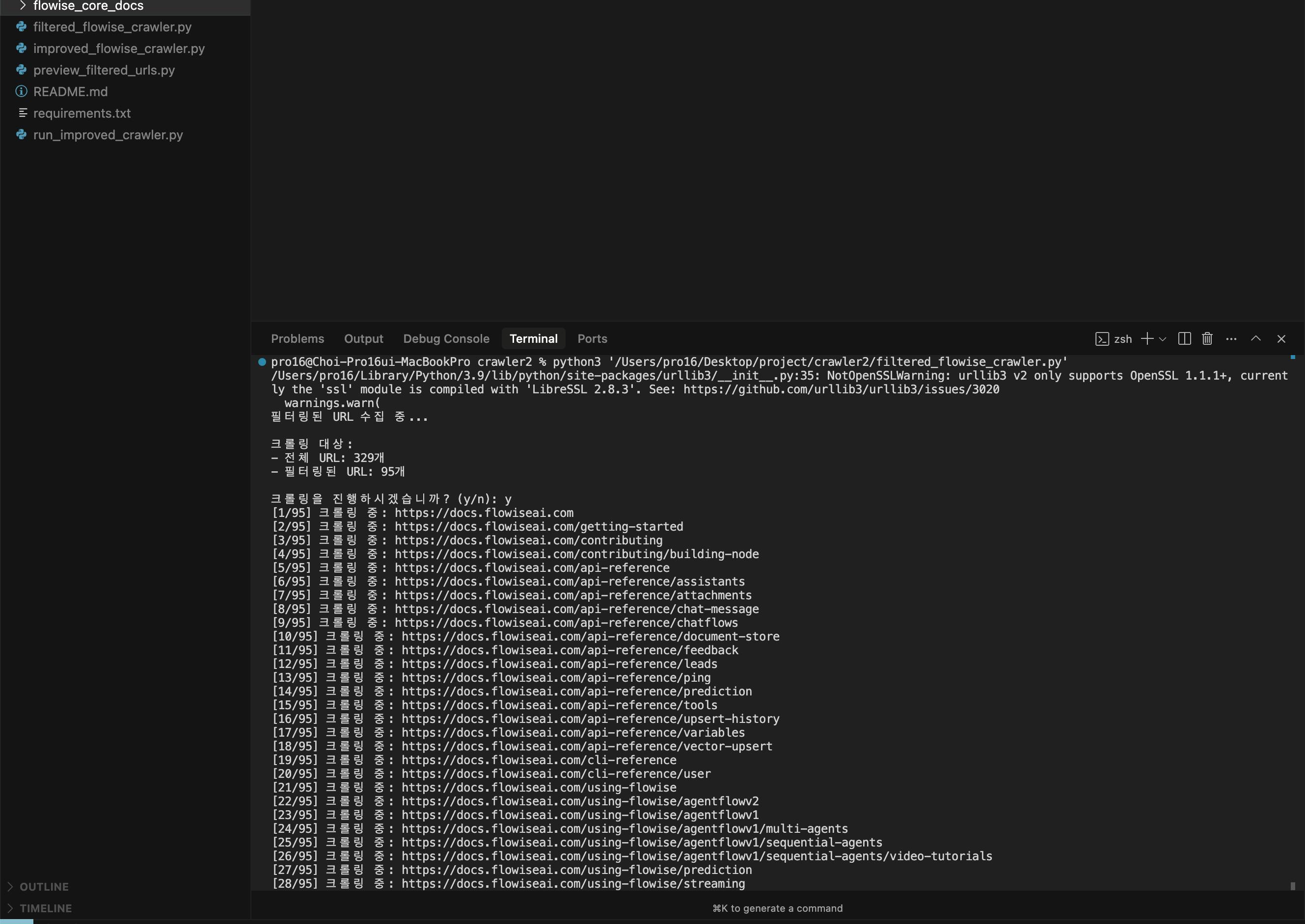 저희가 예전의 구시대의 사람이라면 이걸 하나씩 다 읽어가면서 공부해서 셋팅할 거고, 지피터스라면 이 페이지를 하나씩 캡쳐해서 md파일로 넣어서 문서에 넣었을 지도 모릅니다. 하지만 저희는 에창패이기 때문에 이걸 바이브 코딩으로 크롤러를 직접 만들어서 다 때려넣기로 결정을 합니다.