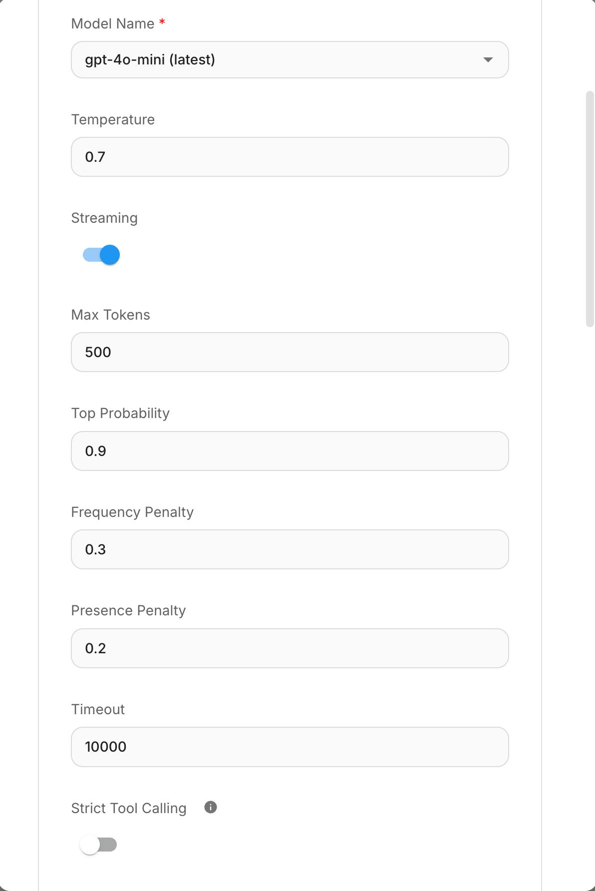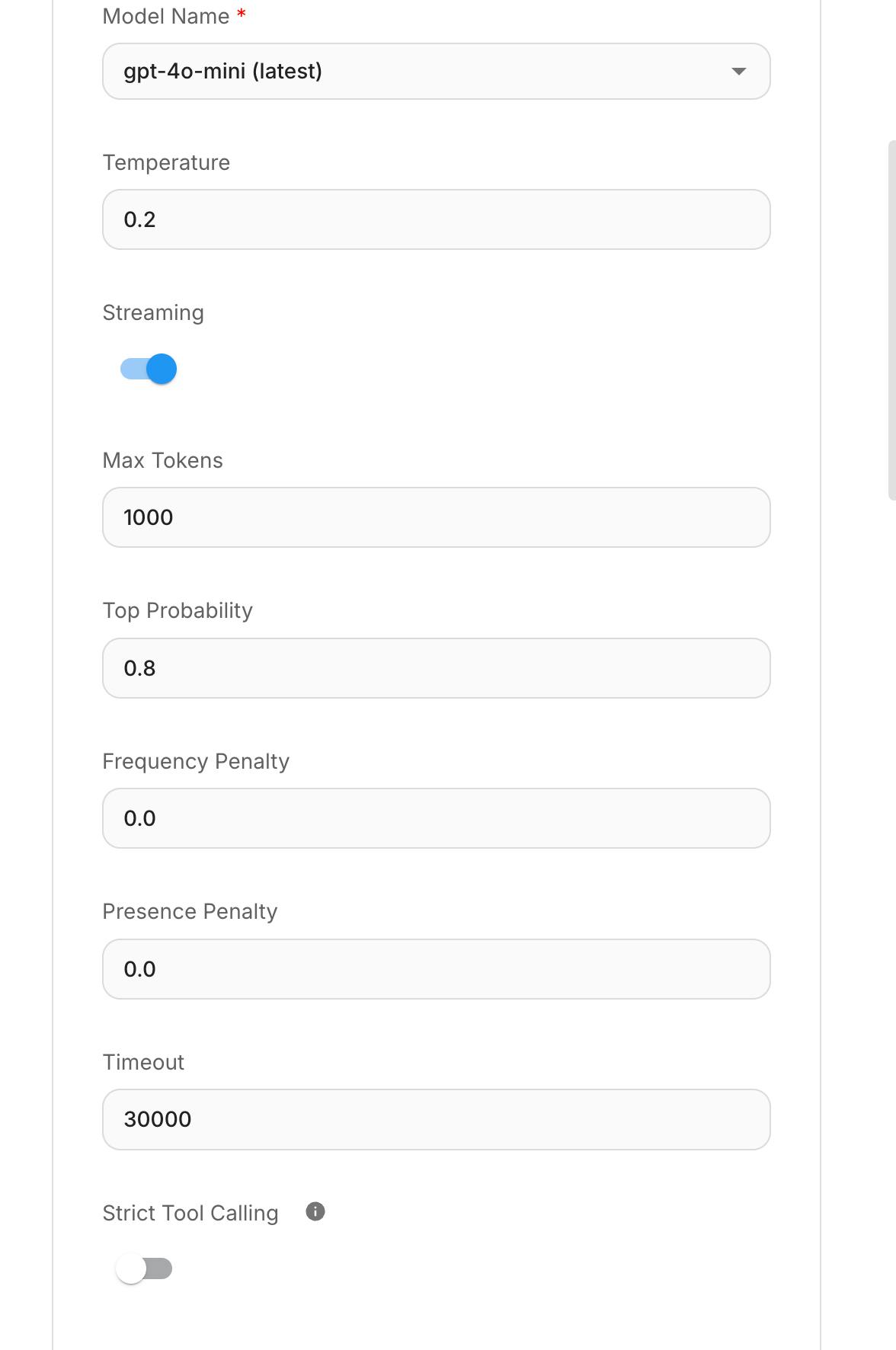 요약해보면 첫번째 노드에서는 질문이 일상적인 대화인지, 전문적인 질문인지를 구분해주는 노드이기 때문에 창의적 답변이나, 반복 페널티는 전혀 필요가 없고(temperature 낮게, frequency, presence penalty 낮게 설정합니다.) 일관적인 대답을 하도록 셋팅을 해줍니다.