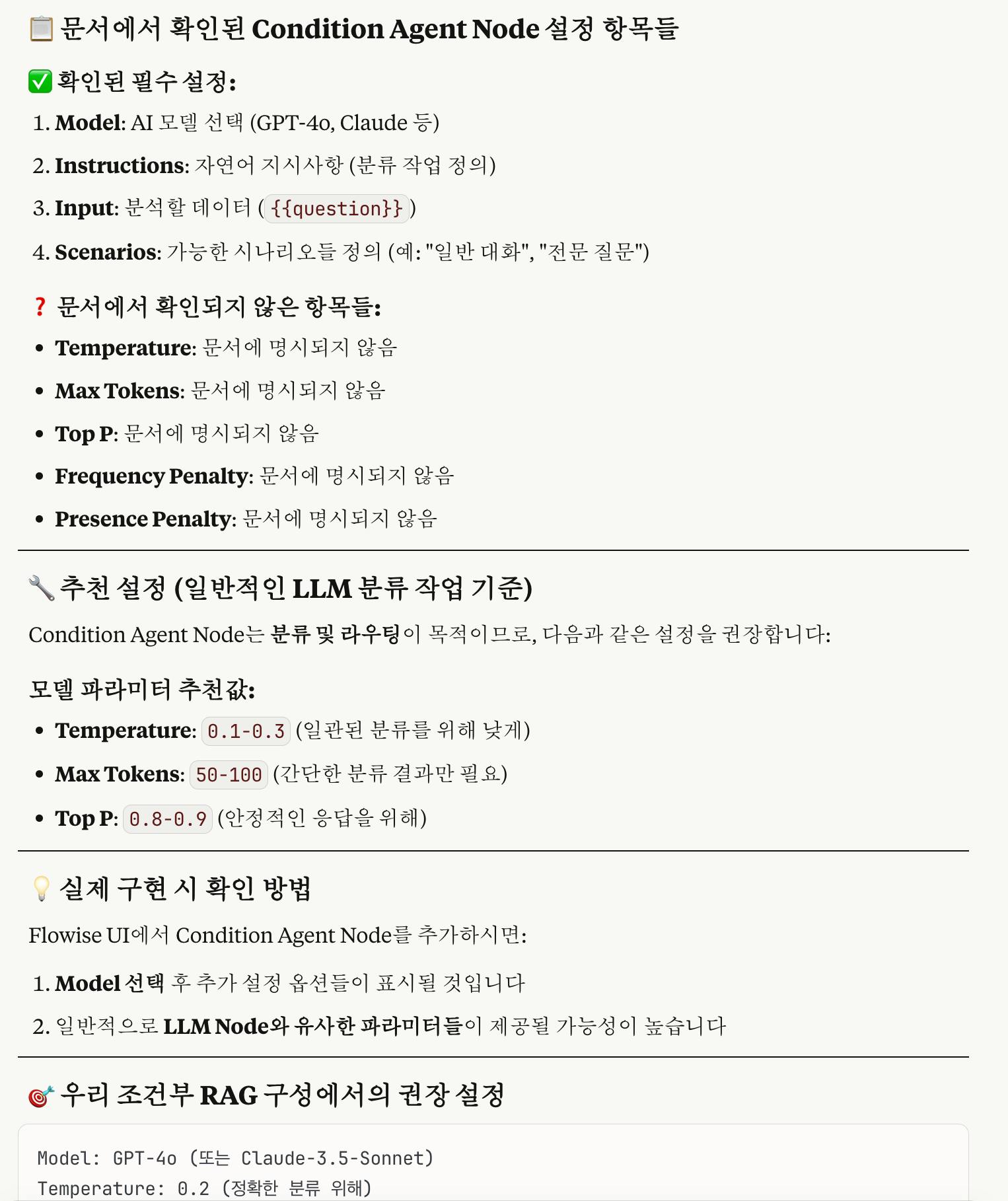 제 클로드는 저렇게 추천을 해줬습니다. tempereture를 낮게 맘대로 지어내지말고 꼭 문서대로 답변을 하게끔 하고, rag 문서를 기반으로 전문 질문에 대한 답변을 하는 것이기 때문에 당연히 같은 단어들이 반복이 될 예정이라 반복 페널티는 적게 주는 걸로 셋팅이 되었습니다.