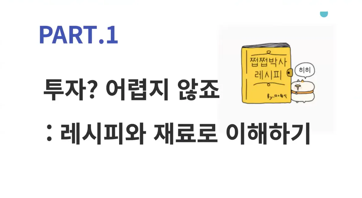 이번 강의에서는 투자를 요리 레시피와 재료로 비유하면서