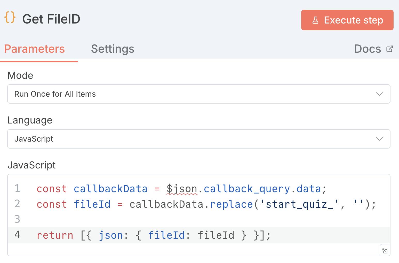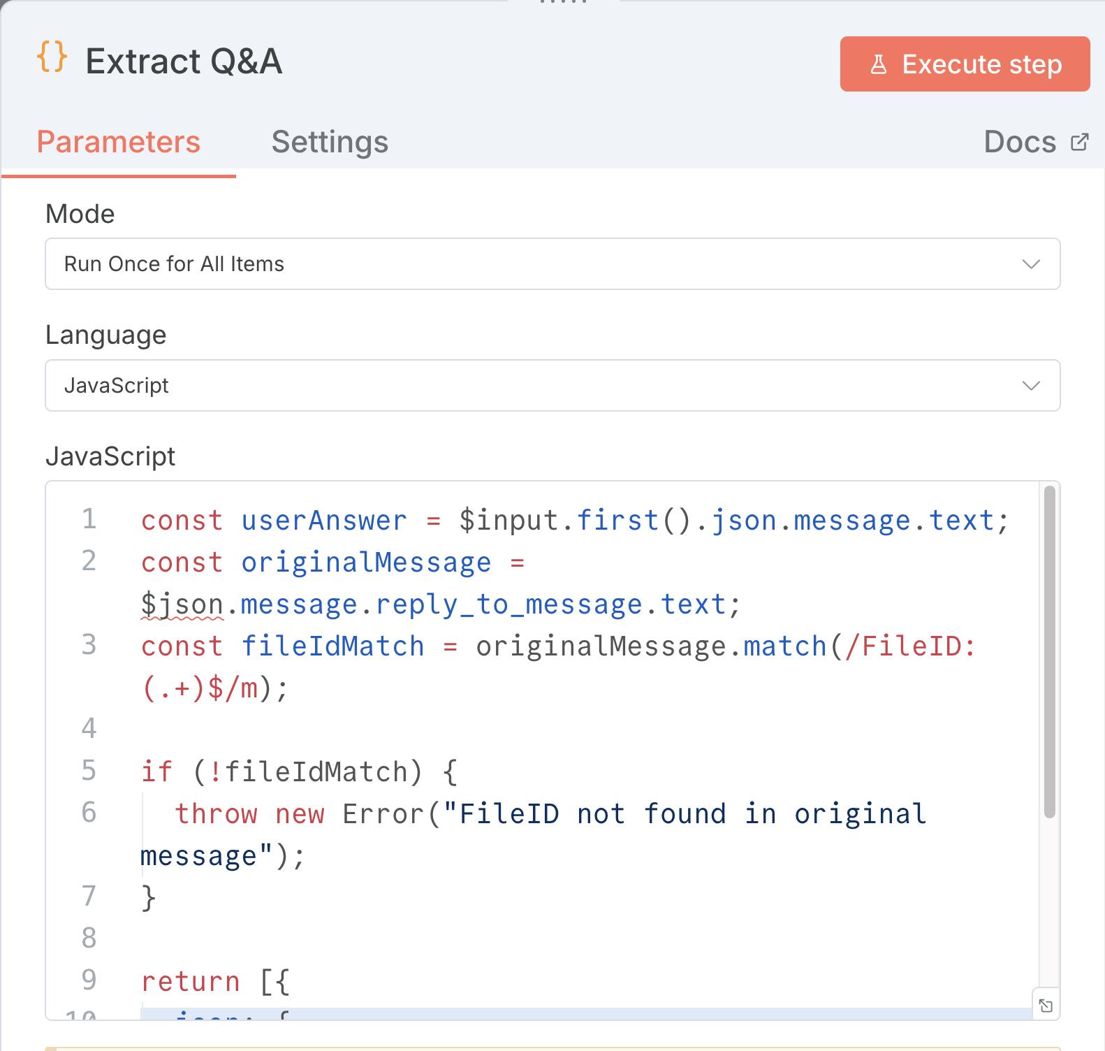 throw new Error('fileId not found (Extract Q&A / Get FileID)');