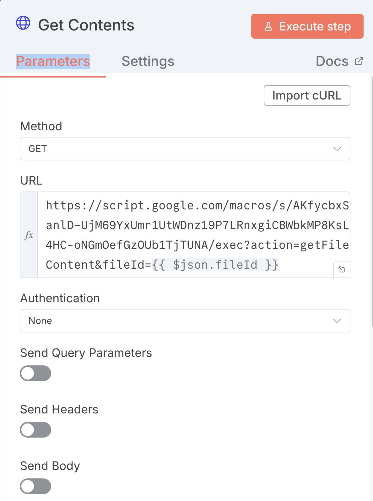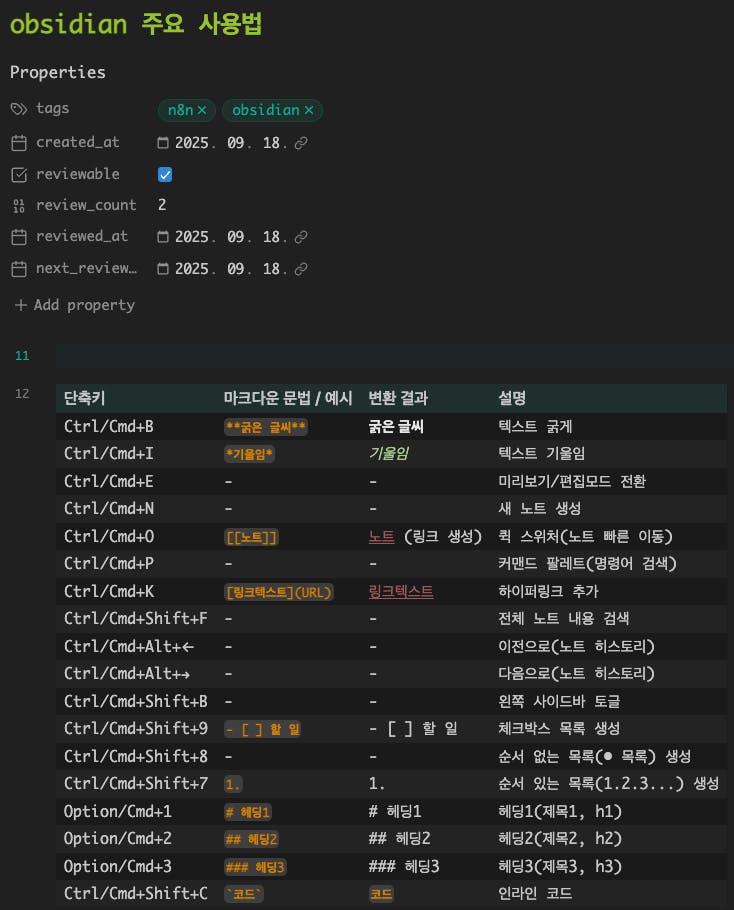- **노트 콘텐츠 (`fileContent`):** `Get Content Again` 노드에서 원본 마크다운 파일의 전체 텍스트를 확보합니다.