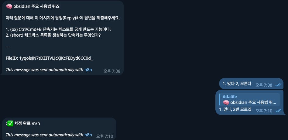 AI가 해당 문서에 대한 문제 제출해서 텔레그램으로 전송