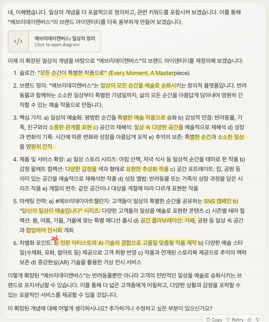 위 사진 캡션 어때요? 괜찮죠? 저는 이런 글 못 써서 번역러 도움 받았어요 ㅋㅋ 내용 이 또 산으로 가니까 오늘은 여기서 마무리할게요. 지금까지 배운 AI 스킬들로 브랜딩 기획이라는 종합예술을 시작할 수 있어서 완전 신나요 😆
