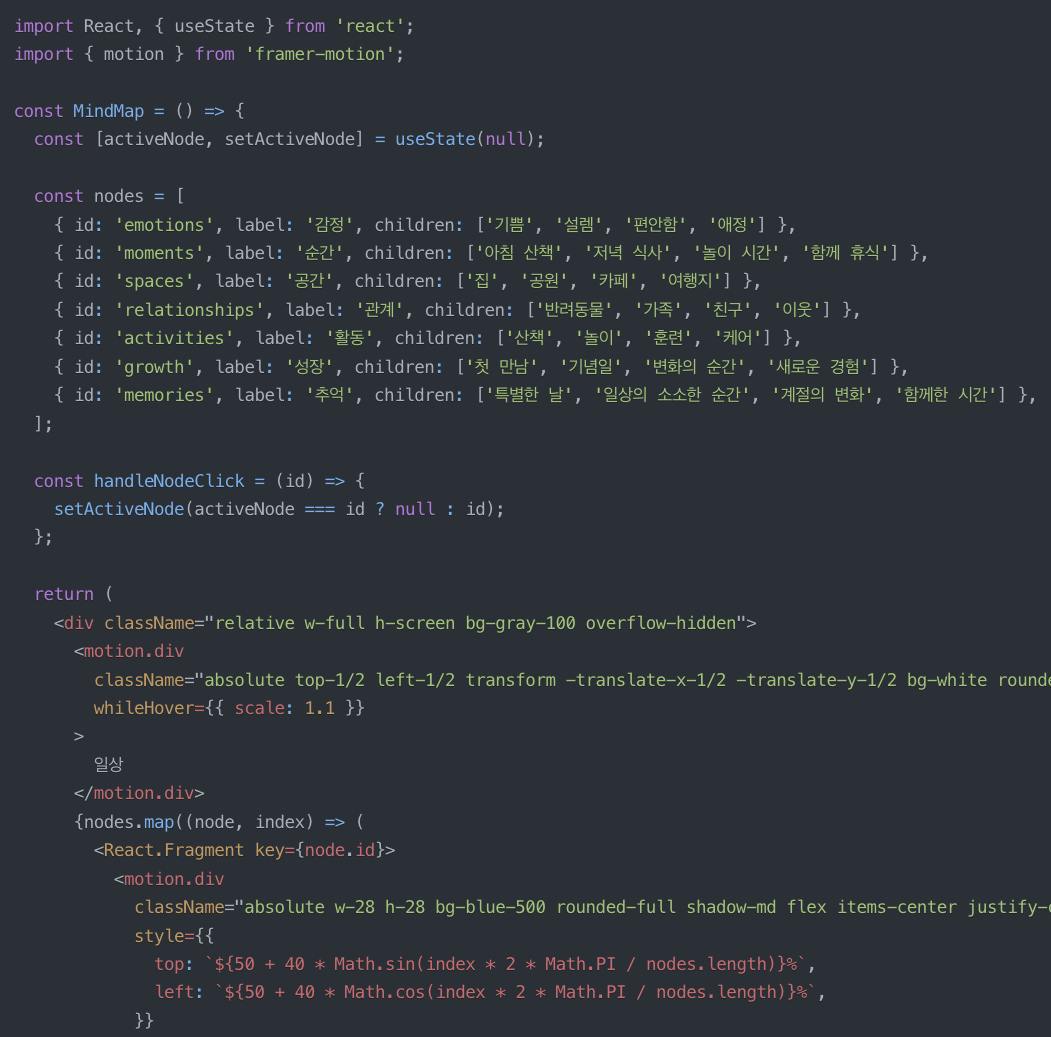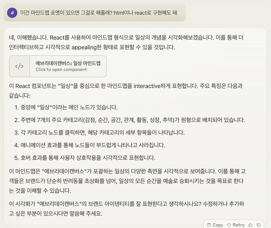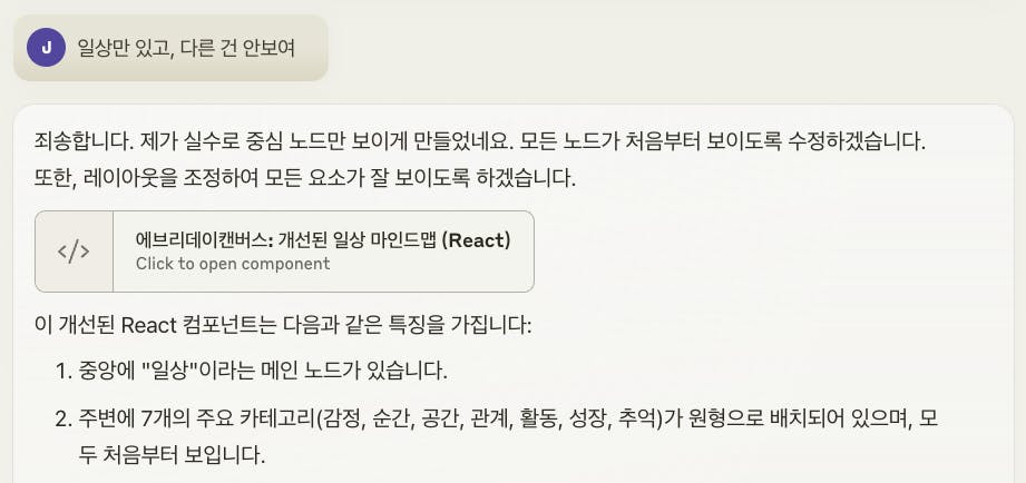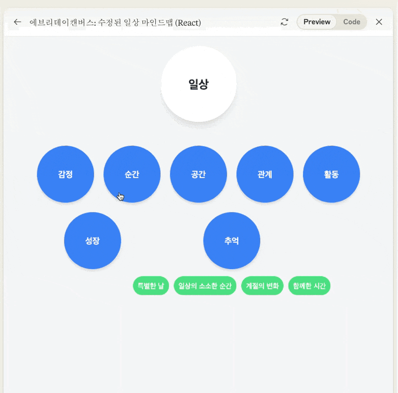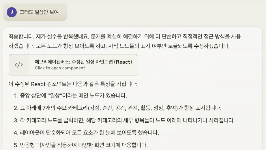 휴~ 완성.. 마인드맵을 웹으로.. 클로드는 이게 쉬운가봅니다.