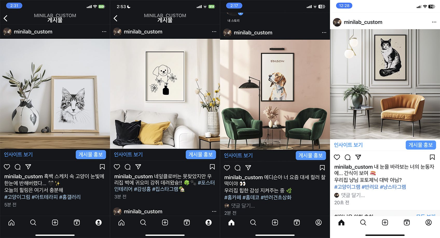 인스타를 이렇게 운영중입니다. 제가 직접 찍은 사진이 아니라 만든 사진이고, 액자속의 작품은 직접 만든거에요. 실제 고객이 작업물을 이렇게 받는 거죠. (크게 4가지 기술이 들어갑니다)